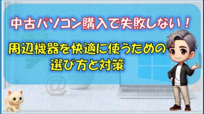 パソコン初心者 中古パソコン購入で失敗しない!周辺機器を快適に使うための選び方と対策 中古パソコンの買い替えで今までの周辺機器が使えなくなる?!安心して下さい、USB変換や接続補助アイテムを使えば簡単に解決できます!「パソコンの事はよくわからない」という初心者向けに、失敗しない選び方とおすすめアイテムをご紹介します。 2025.10.23 パソコン初心者