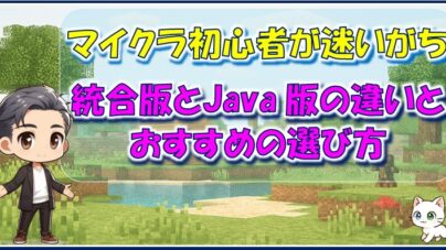パソコン初心者 マイクラ初心者が迷いがち統合版とJava版の違いとおすすめの選び方 マイクラ初心者必見!まずは統合版とJava版の違いをやさしく解説し、失敗しない選び方をご紹介。家族や友達と気軽に遊びたい人も、PCでMODをじっくり楽しみたい人も安心。さらにサーバー(例:ConoHa for GAME)の活用で快適なマルチプレイ環境を整える方法も解説。 2025.12.17 パソコン初心者