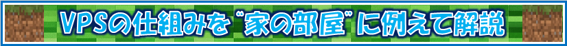 レンタルサーバー(VPS)は、インターネット上に「自分専用の部屋」を借りるイメージで、その中にマイクラのサーバーを設置して遊ぶ方法です。