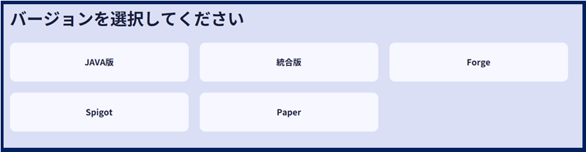 ゲーム選択画面で「Minecraft」を選ぶだけで、必要な設定がすべて自動で構築されます。OSやポート設定など、難しい部分はすべてお任せでOK。