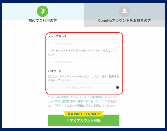 ConoHa for GAMEを利用するために、ConoHaのアカウントを作成します。