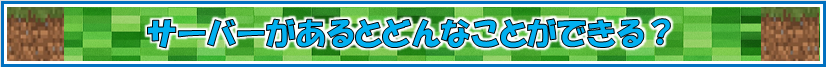 でも、専用のサーバーを使えば、24時間いつでも同じワールドに入ることができ、知らない人が勝手に入ってくる心配もありません。