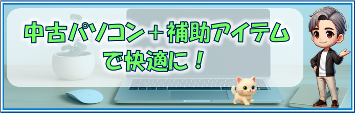 低予算でも快適に使える中古パソコン+補助アイテムの組み合わせ例をご紹介します。